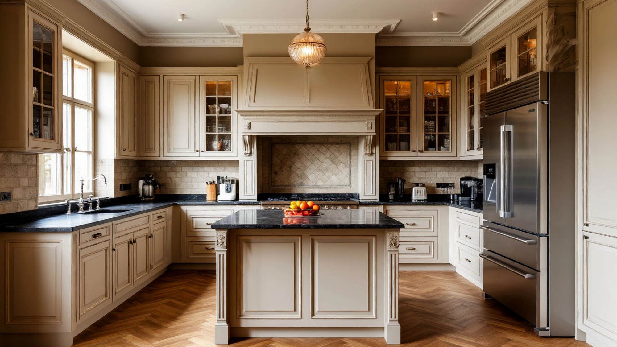 В кухне "Кремовый флёр" много внимания уделено симметрии. Это один из ключевых принципов неоклассического стиля. Симметрия здесь не строгая и холодная, а мягкая, поддерживающая ощущение порядка. Она не навязывается, а ощущается на уровне подсознания. Благодаря этому кухня воспринимается как уравновешенное пространство, в котором приятно находиться долгое время.