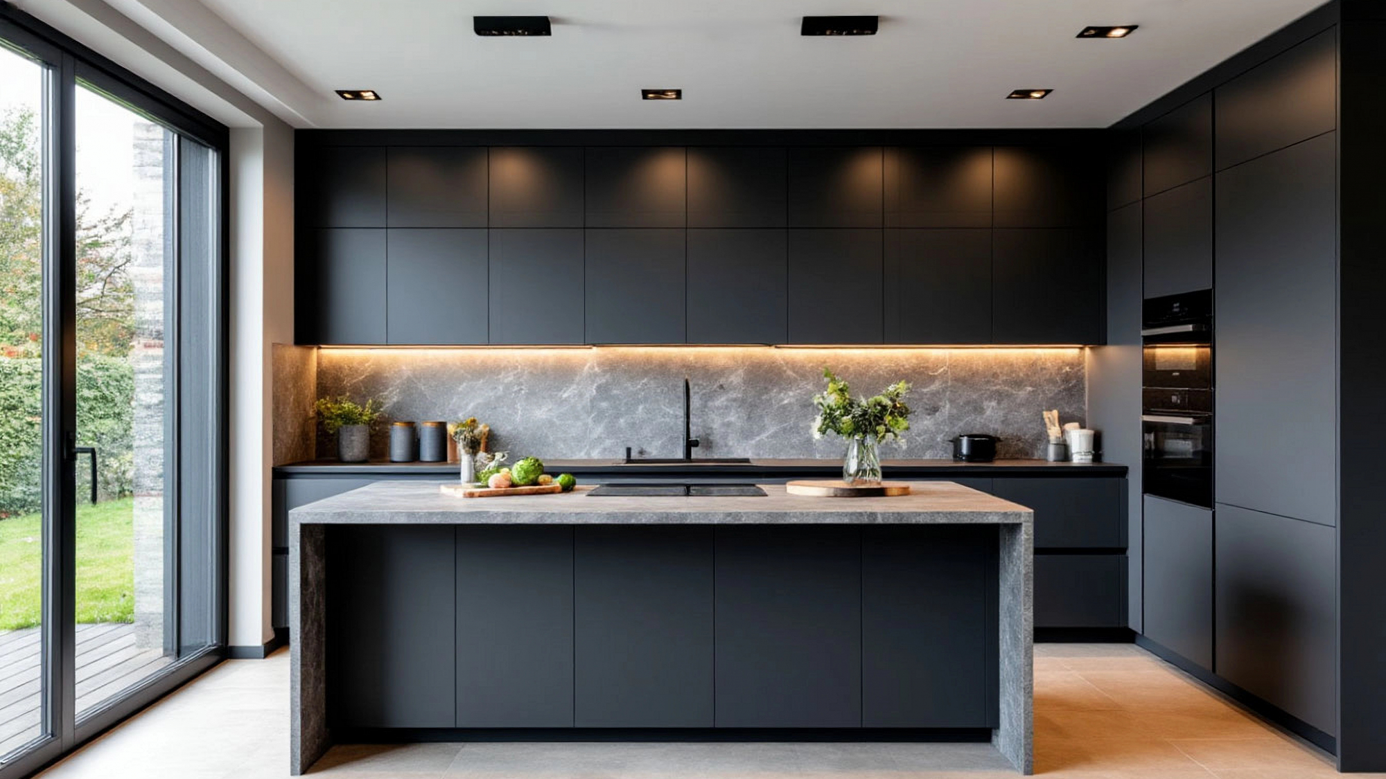 Графитовый цвет в этой модели работает как универсальная база. Он легко сочетается с разными материалами, оттенками и текстурами. Натуральное дерево, камень, металл, стекло — все эти материалы раскрываются на его фоне по-разному, создавая многослойность, но не перегружая пространство. Это позволяет адаптировать кухню под разные стилистические сценарии: от более строгих и сдержанных до мягких и уютных.