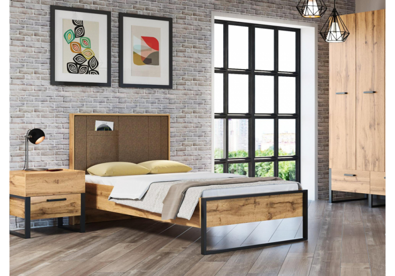 Кровать Iris 90х200 металл дуб вотан / черный муар (93,4x)