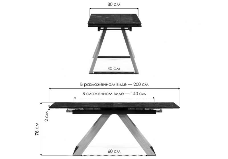 Керамический стол Гарднер 140(200)х80х76 temptation avorio / черный (80x76)