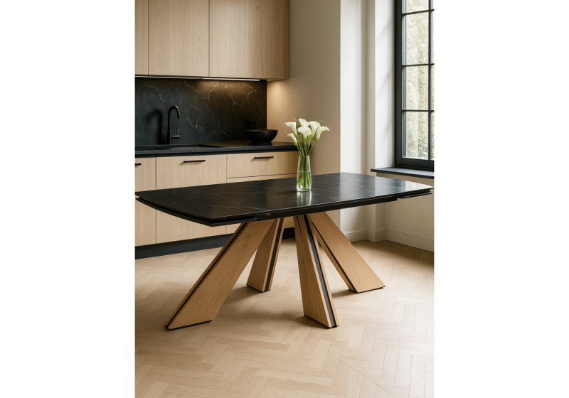 Керамический стол Шаннон 180(240)х90х79 черный мрамор / дуб монтана (90x79)