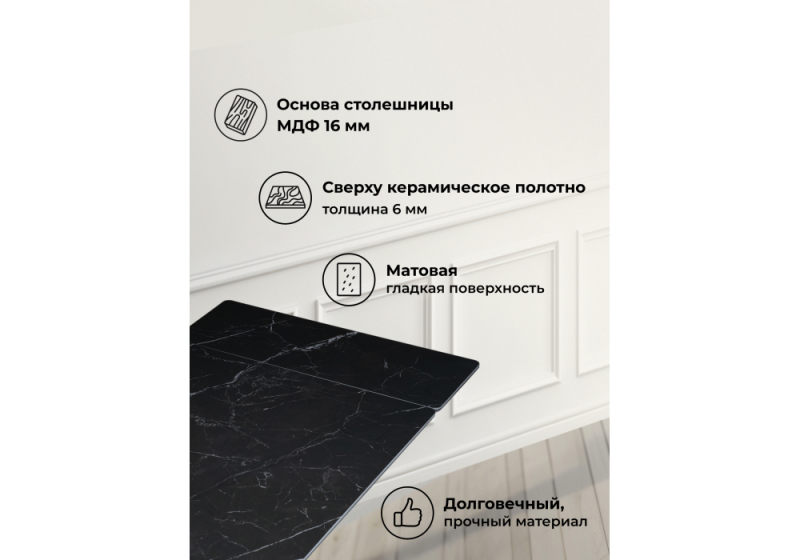 Керамический стол Вилли 140(200)х80х75 черный мрамор shakespeare black / черный (80x75).