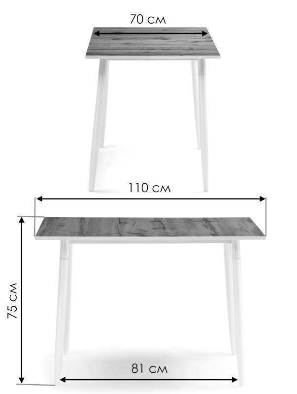 Расстояние между ножками: 81 см. Толщина столешницы: 2 см.