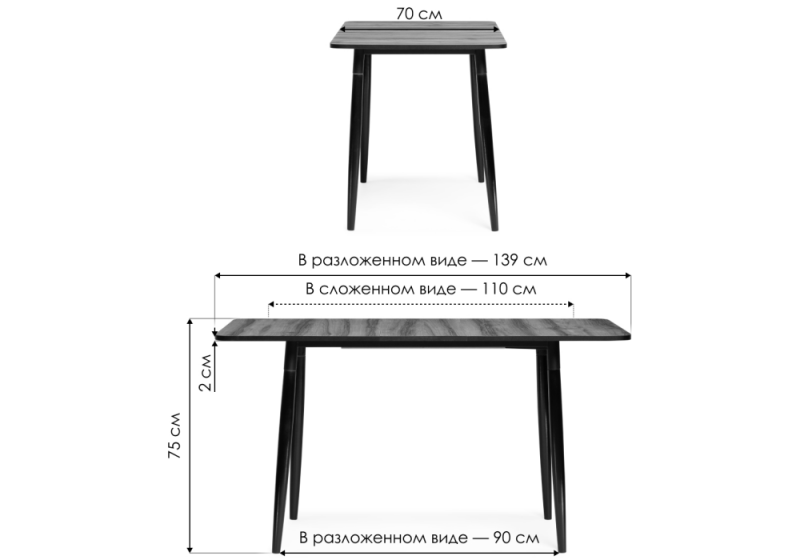 Расстояние между ножками: 81 см. Толщина столешницы: 2 см.