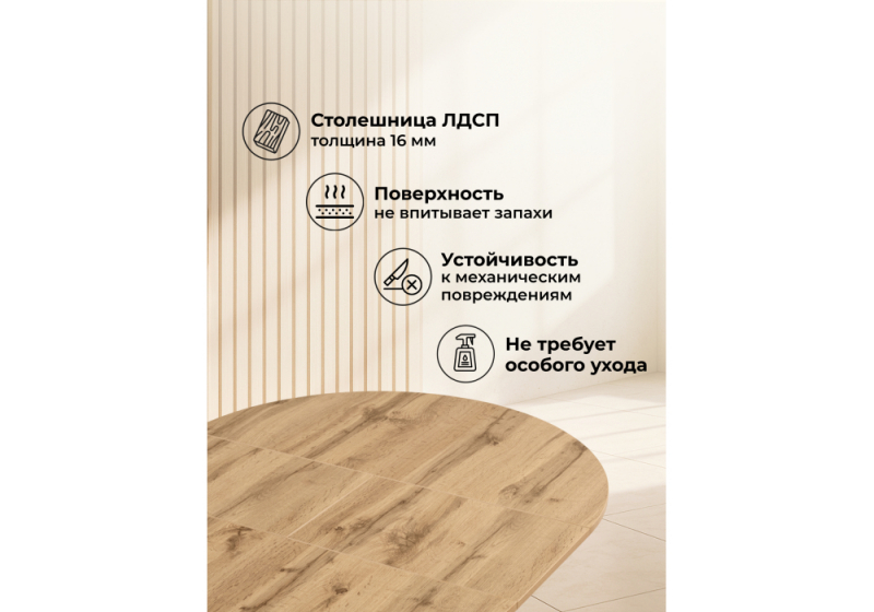 Деревянный стол Карпер — это стильный и функциональный предмет мебели, идеально подходящий для современных интерьеров. Столешница выполнена из прочного ламината и ЛДСП, что обеспечивает долговечность и легкость в уходе. Металлический каркас придает констр