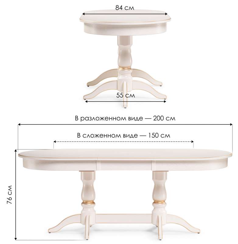 Стол деревянный Красидиано 150 слоновая кость / золото (84x76)