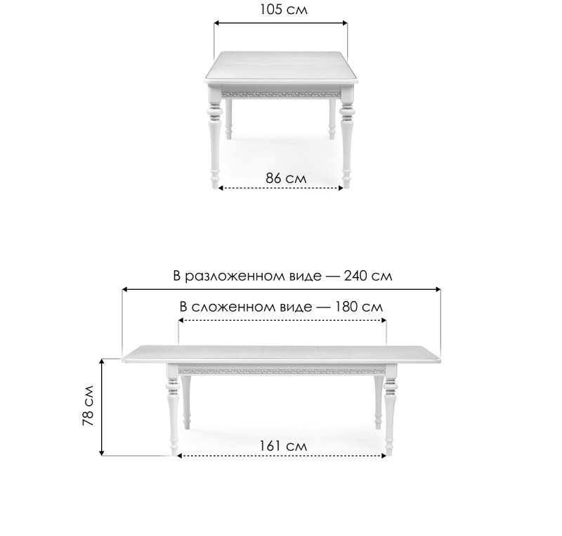 Длина стола в разложенном виде: 240 см.