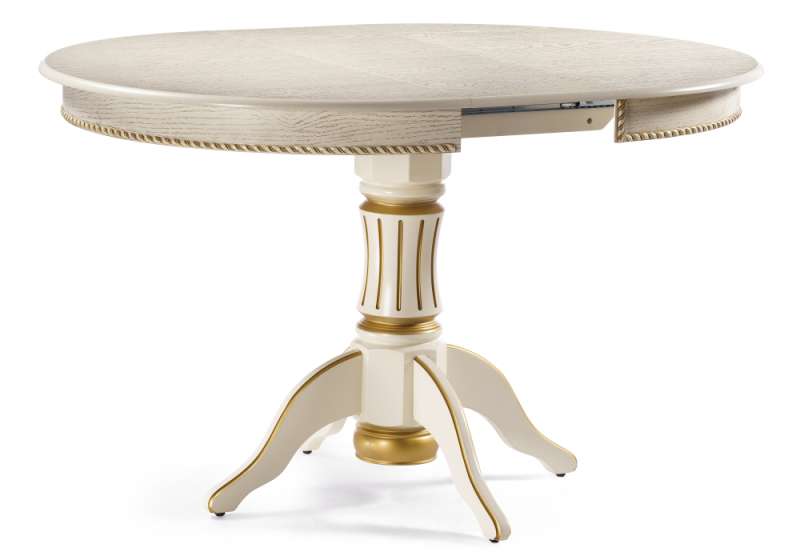 Стол деревянный Павия 100(130)х100х79 слоновая кость с золотой патиной (100x79).