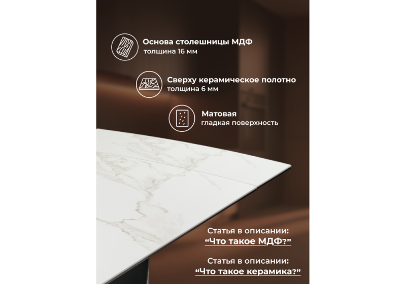 Керамический стол Готланд 180(240)х90х79 белый мрамор  / черный (90x79).