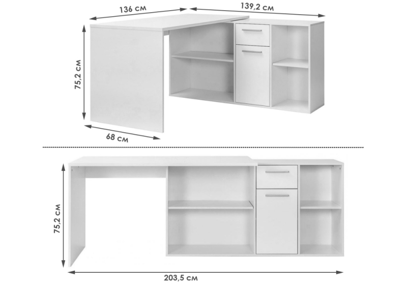 Компьютерный стол Лайт 03.245F белый гладкий 101 (75,2).