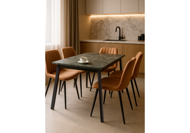 Стол стеклянный Агни 110 королевский мрамор / черный матовый (68x75).