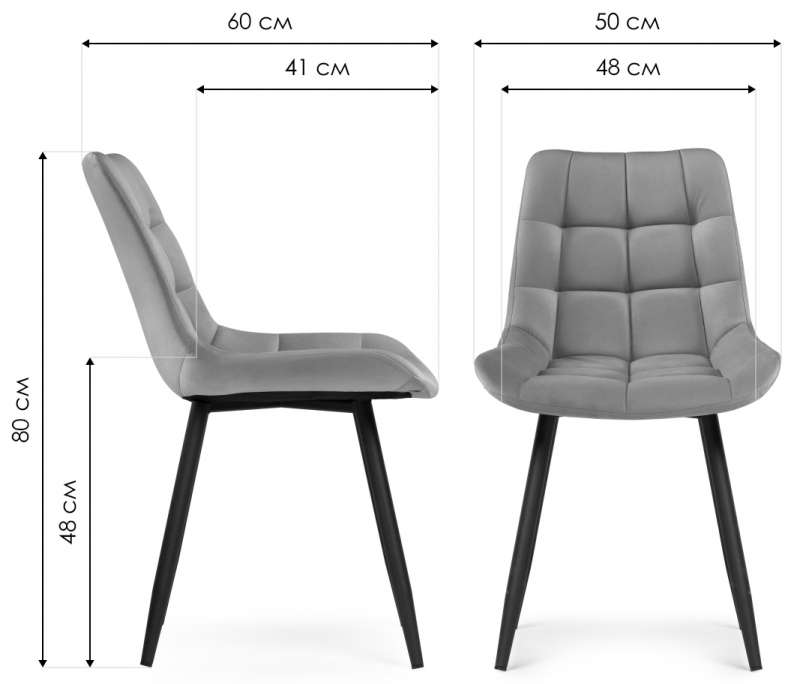 Стул на металлокаркасе Челси велюр темно-серый / черный (50x60x80).