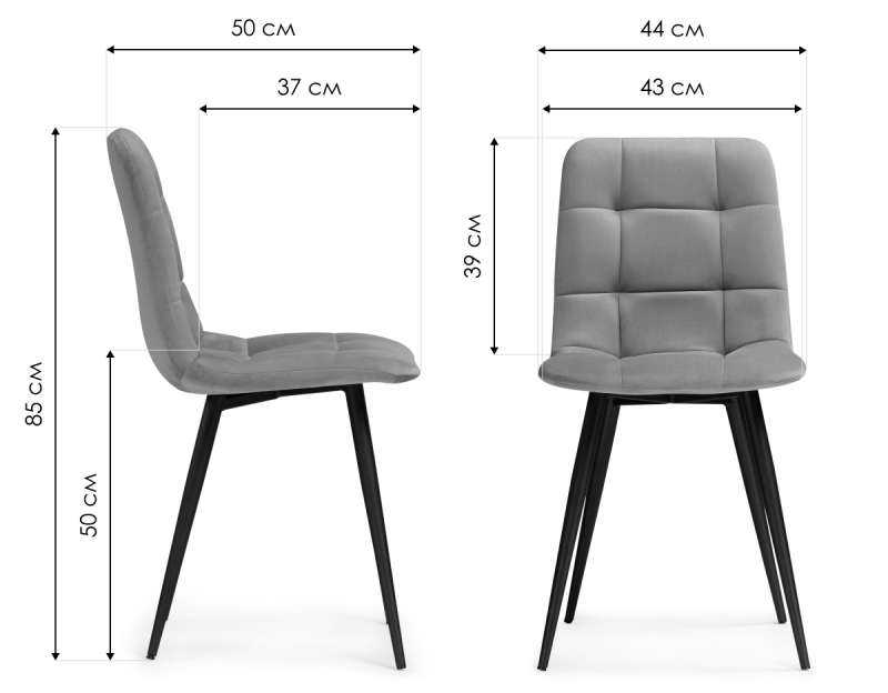 Стул на металлокаркасе Чилли светло-серый велюр / черный (43,5x50x87,5)
