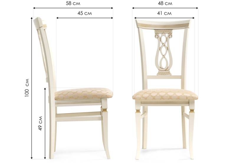 Стул деревянный Флавиан слоновая кость / золото (48x58x100)